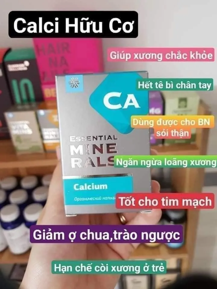 01 lọ calci hữu cơ: dễ hòa tan, hấp thụ cao, giúp xương chắc khỏe, chống ợ chua, trào ngược dạ dày, không đầy bụng, táo bón.